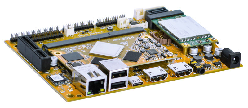 The Boardcon EM3399 is a hexa-core single-board computer based on Rockchip RK3399 processor with two Cortex A72 cores clocked at up to 1.8GHz, and four Cortex A53 cores teamed with a Mali-T860MP4 GPU, featuring 3G/4G and WiFi/BT module, supporting 4K H.265 video decoding up to 60 fps, HDMI in/output, USB Type-C, Gigabit Ethernet, and target to 2in1 Android tablets, VR, TV-BOX, laptops, in-vehicle navigations, communications and other terminals covering industrial and consumer applications, including smart Device, advertising devices / the all-in-one machines, POS systems, vehicle control terminals, thin-clients, VOIP video conferencing security / monitoring / policing, IoT, as well as other fields.
