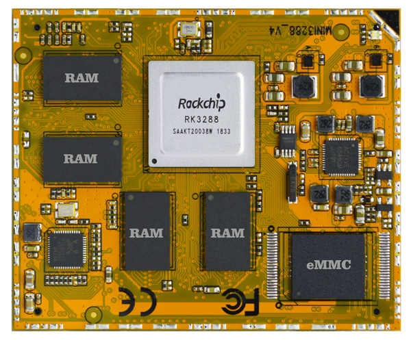 MINI3288 is a system-on-module (SoM) based on Rockchip RK3288 SoC. Integrate quad-core Cortex-A17 with separately Neon and FPU coprocessor , also shared 1MB L2 Cache. Support real 4Kx2K video decoder, 3D GPU processor with OpenGL ES3.0, OpenCL1.1 and DirectX11. It is a high performance application module for high-end tablet, notebook, all-in-one device, smart monitor and TV-Box.