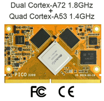 * Processor: Rockchip RK3399. Dual-core Cortex-A72 @ 1.8GHz + Quad-core Cortex-A53 @1.4GHz