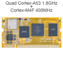* Processor: NXP i.MX8M Mini. Quad-core Cortex-A53 @ 1.8GHz + Cortex-M4F @ 400MHz